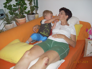 Épp simogatással gyógyitgatja anyucikát. 🙂